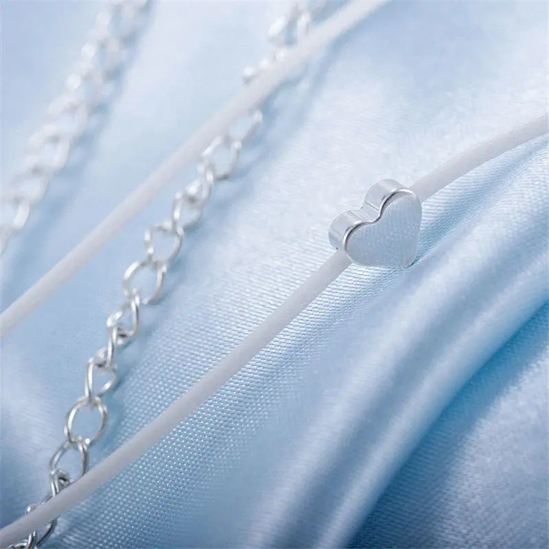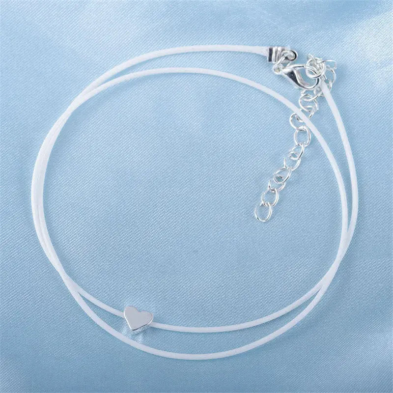 Böhmisches Fußkettchen in Silberfarbe am Bein, modisches Herz, weibliche Fußkettchen, barfuß für Frauen, Beinkette, Strand-Fußschmuck